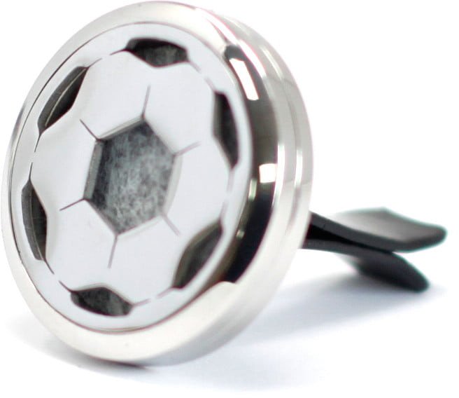 Dyfuzor samochodowy – Piłka nożna to okrągły odświeżacz do aromaterapii, o średnicy 30 mm zawierający filcową podkładkę, która może pomieścić kilka kropli olejku eterycznego. Przypnij go do panelu wentylacyjnego w swoim samochodzie, aby umożliwić rozprzestrzenienie zapachu w jego wnętrzu. Odświeżacz jest wykonany z wysokiej jakości stali nierdzewnej i jest dostarczany wraz z 10 zmywalnymi (wielokrotnego użytku) filcowymi podkładkami w różnych kolorach.