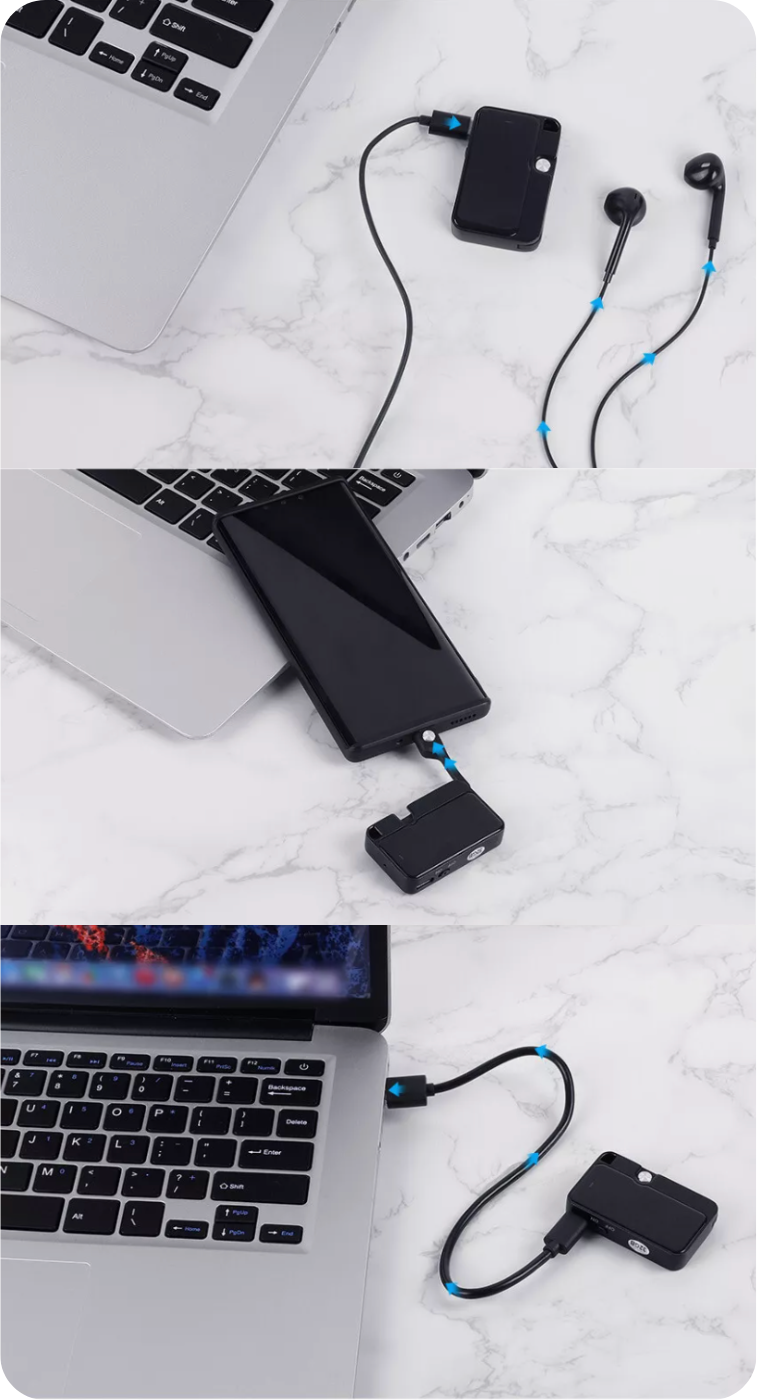 8. Funkcja OTG: Podłączanie dyktafonu bezpośrednio do telefonu lub tabletu w celu szybkiego przenoszenia plików dźwiękowych.
