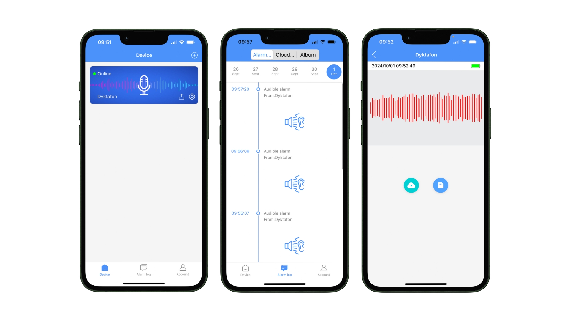 2. Alerty wykrycia dźwięku – Aplikacja automatycznie generuje alerty, gdy wykryje dźwięk. Możesz przeglądać te alerty w dzienniku zdarzeń, co pozwala na łatwe monitorowanie wszelkich aktywności w Twoim otoczeniu.