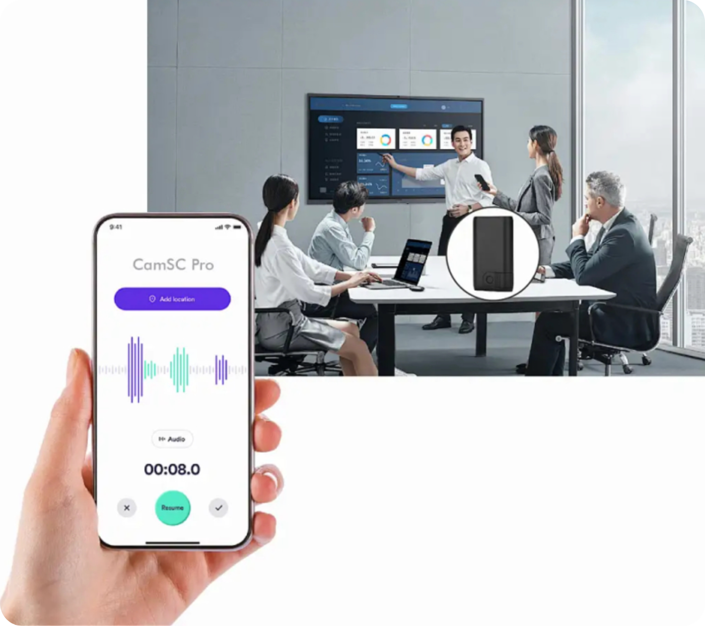 1. Dedykowana aplikacja CamSC Pro: Aplikacja zapewnia pełną kontrolę nad urządzeniem z poziomu smartfona. Jest intuicyjna i prosta w obsłudze, dzięki czemu konfiguracja dyktafonu zajmuje tylko kilka chwil.