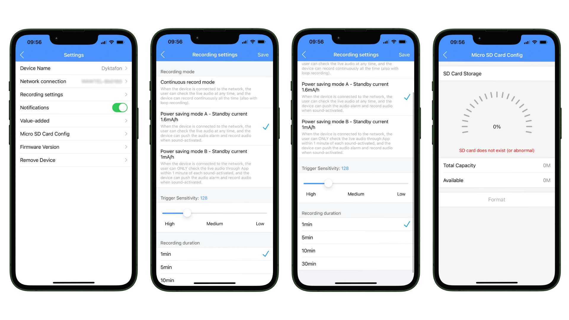 7. Zaawansowane zarządzanie nagraniami: Z poziomu aplikacji możesz ustawić czułość detekcji dźwięku, a także wybrać czas trwania nagrań, od 1 do 5 minut. Masz pełną kontrolę nad tym, jak i kiedy dyktafon rejestruje dźwięki, co zapewnia elastyczność i dopasowanie do Twoich potrzeb.