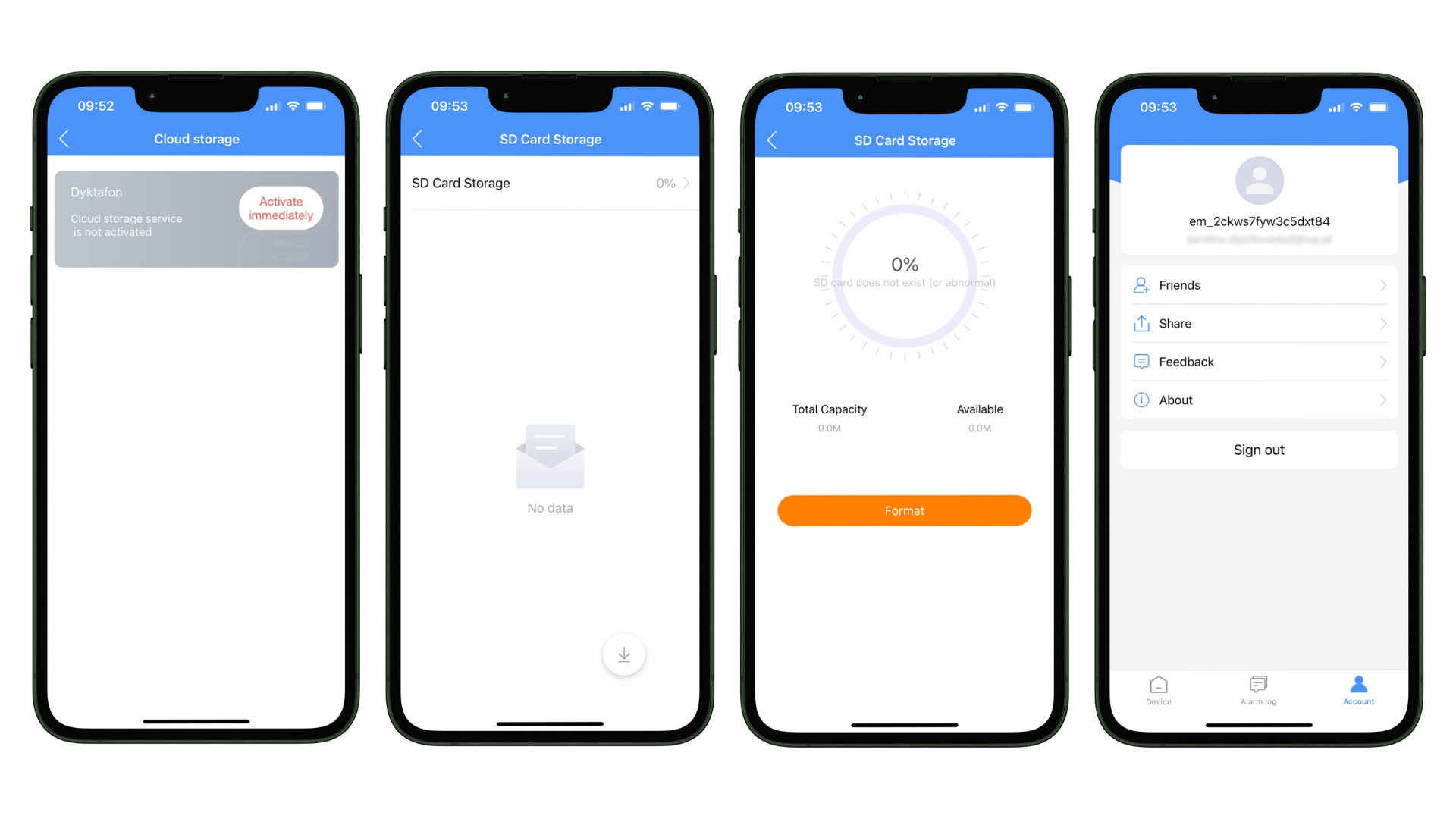 8. Bezproblemowe zarządzanie kartą pamięci: Aplikacja umożliwia monitorowanie stanu karty microSD, w tym dostępnej przestrzeni i pojemności. Dla wygody użytkownika, karta może zostać sformatowana bezpośrednio z poziomu aplikacji, co ułatwia zarządzanie nagraniami.
