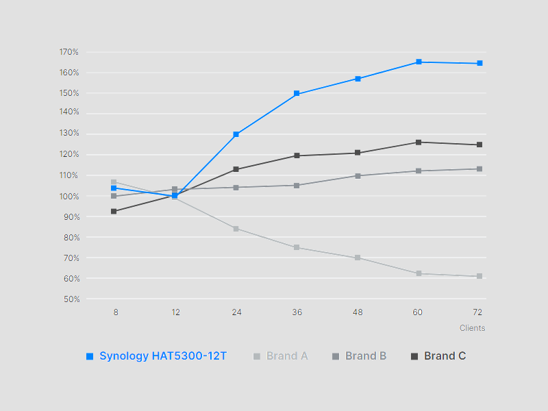 Dzięki testowaniu i optymalizacji dyski twarde z serii HAT5300 zostały zoptymalizowane pod kątem zapewnienia do 23% wyższej stałej wydajności odczytu sekwencyjnego w wymagających środowiskach obsługujących wielu użytkowników.