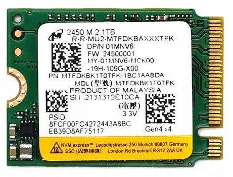 Dysk SSD Micron 2550 o pojemności 1 TB to nowoczesne rozwiązanie pamięci masowej, które gwarantuje znakomitą wydajność oraz niezawodność. Dzięki zastosowaniu interfejsu M.2 PCIe NVMe, ten dysk stanowi doskonały wybór dla użytkowników laptopów oraz konsol, takich jak Steam Deck, którzy pragną najwyższej jakości w zakresie przechowywania danych.