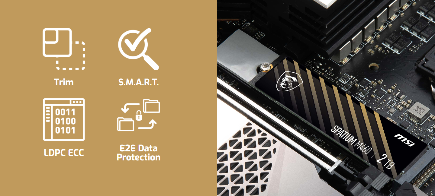 Zoptymalizowany pod kątem możliwości interfejsu PCIe Gen4, napęd SPATIUM M460 SSD osiąga prędkości odczytu/zapisu dochodzące do 5000/4500 MB/s, pozwalając tym samym na niesamowicie szybki transfer danych i skrócenie czasu ładowania gier.