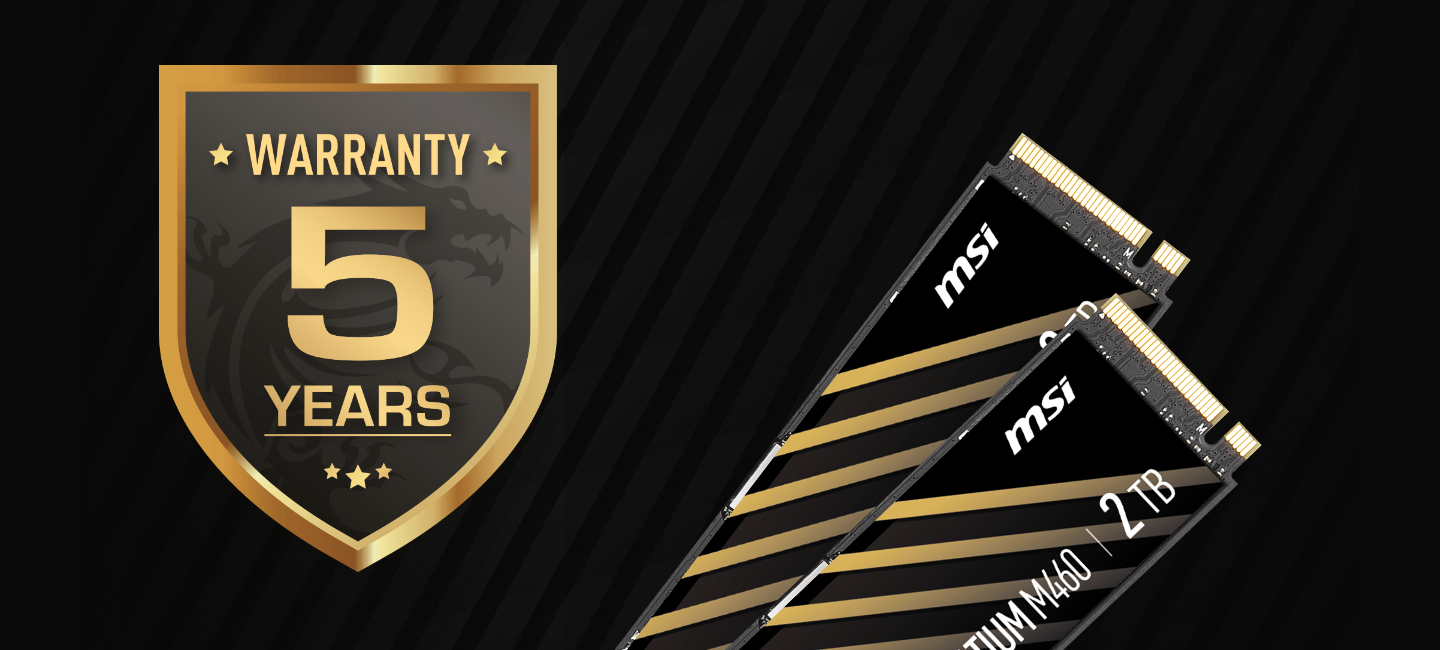 Firma MSI gwarantuje wysoką jakość i niezawodność działania napędów z serii SPATIUM M460, dlatego dyski te objęte są aż 5-letnią kompleksową gwarancją. Jeśli potrzebujesz pomocy lub nie jesteś zadowolony ze swojego produktu, zgłoś się do wsparcia technicznego firmy MSI, a my pomożemy Ci w rozwiązaniu Twoich technicznych problemów.