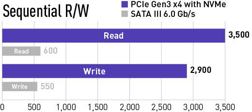 Dysk SSD MP34 wykorzystuje szybki interfejs transferu PCIe Gen3 x4. Dzięki obsłudze przepustowości magistrali PCIe może oferować prędkość transferu do pięć razy większą niż interfejs SATA III. MP34 pozwala wskoczyć na pokład szybkiego pociągu prosto do sedna wydajności.