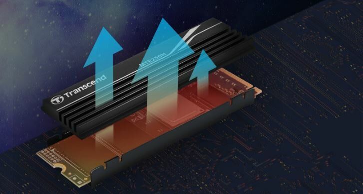 Transcend MTE250H jest wyposażony w aluminiowy radiator o wysokiej wydajności, który poprawia odprowadzanie ciepła z wysokowydajnego, kompaktowego dysku SSD. Wysoka przewodność cieplna aluminium i zwiększona powierzchnia zmniejszają temperaturę dysku o 15%, dzięki czemu dysk SSD Transcend MTE250H M.2 może utrzymać niższą temperaturę pracy, nawet gdy maksymalizujesz wydajność na komputerze stacjonarnym lub konsoli do gier.