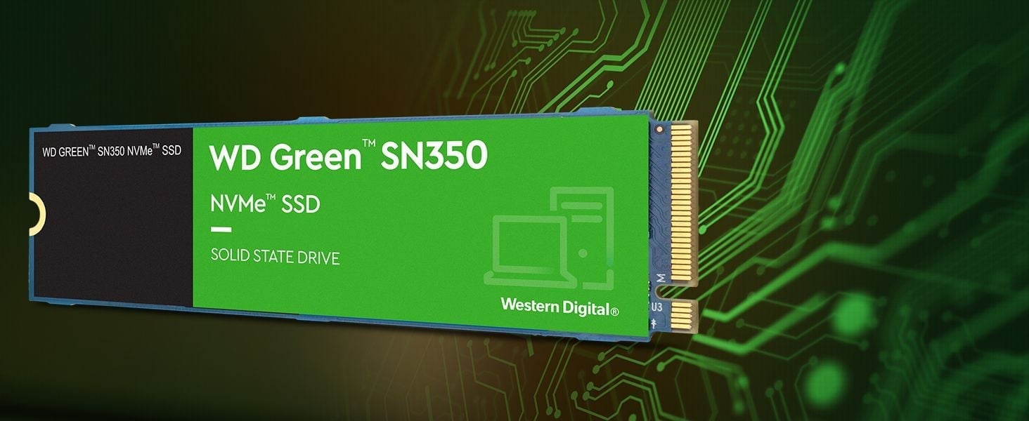 Dysk SSD WD Green™* SN350 NVMe™ jest dostępny w kilku pojemnościach do 2TB.