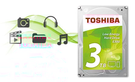 E300 - LOW-ENERGY HARD DRIVEENERGOOSZCZĘDNA, WYDAJNA PAMIĘĆ MASOWA3,5-calowy wewnętrzny dysk twardy E300 firmy Toshiba, skonstruowany z myślą o komputerach stacjonarnych, to energooszczędna lokalna lub sieciowa pamięć masowa o pojemności do 3 TB przeznaczona do standardowych zadań. Niezawodna wydajność dysku E300 jest efektem szeregu zastosowanych w tym urządzeniu rozwiązań, takich jak technologia dwuetapowego ruchu głowicy oraz czujnik RV, które redukują zakłócenia powodowane drganiami. Przy tym wszystkim dysk E300 pozostaje chłodny i cichy podczas pracy, co przekłada się na niższe zużycie energii — Twój komputer stacjonarny korzysta więc ze słynnej efektywności i niezawodności technologii firmy Toshiba. | ![]() |