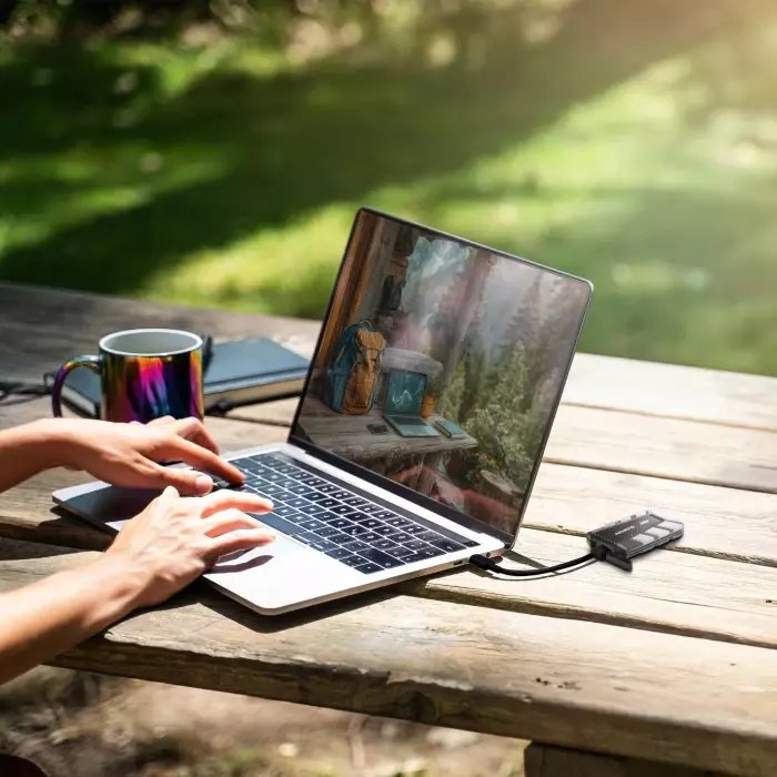Dysk SD820 obsługuje standard USB 3.2 Gen2 x2, zapewniając około 20-krotnie większe szybkości transferu niż w przypadku tradycyjnych zewnętrznych dysków twardych. Dzięki szybkościom odczytu/zapisu do 2000 MB/s i ogromnej pojemności sięgającej 4000 GB można uzyskiwać dostęp do dużych plików bezpośrednio na dysku SSD i je na nim edytować. Zapewnia to bezproblemową i nieprzerwaną pracę o wysokiej wydajności zarówno w przypadku twórców treści, jak i profesjonalnych fotografów.