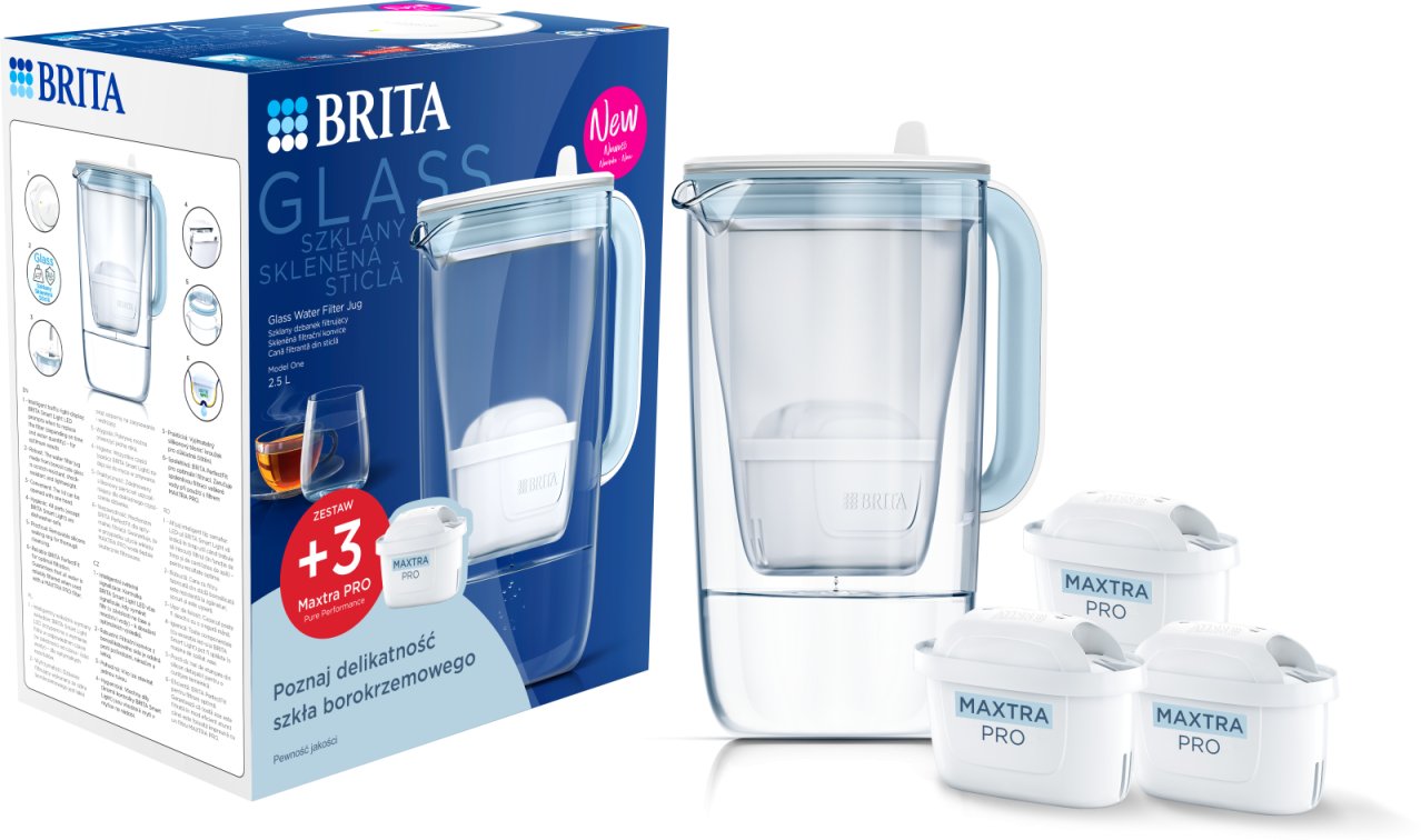 Dzbanek filtrujący Brita Glass + 3 x filtr MAXTRA PRO Pure Performance Niebieski