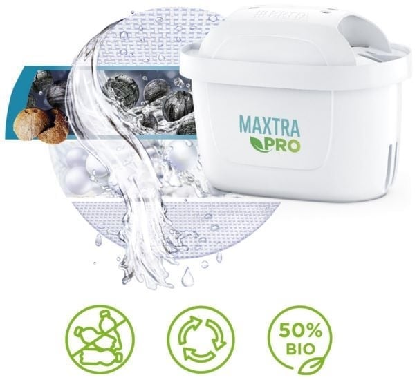 Większa wydajność filtracji do 150 l. 1 filtr MAXTRA PRO zastępuje 150 jednorazowych, plastikowych butelek wody (o pojemności 1 l)