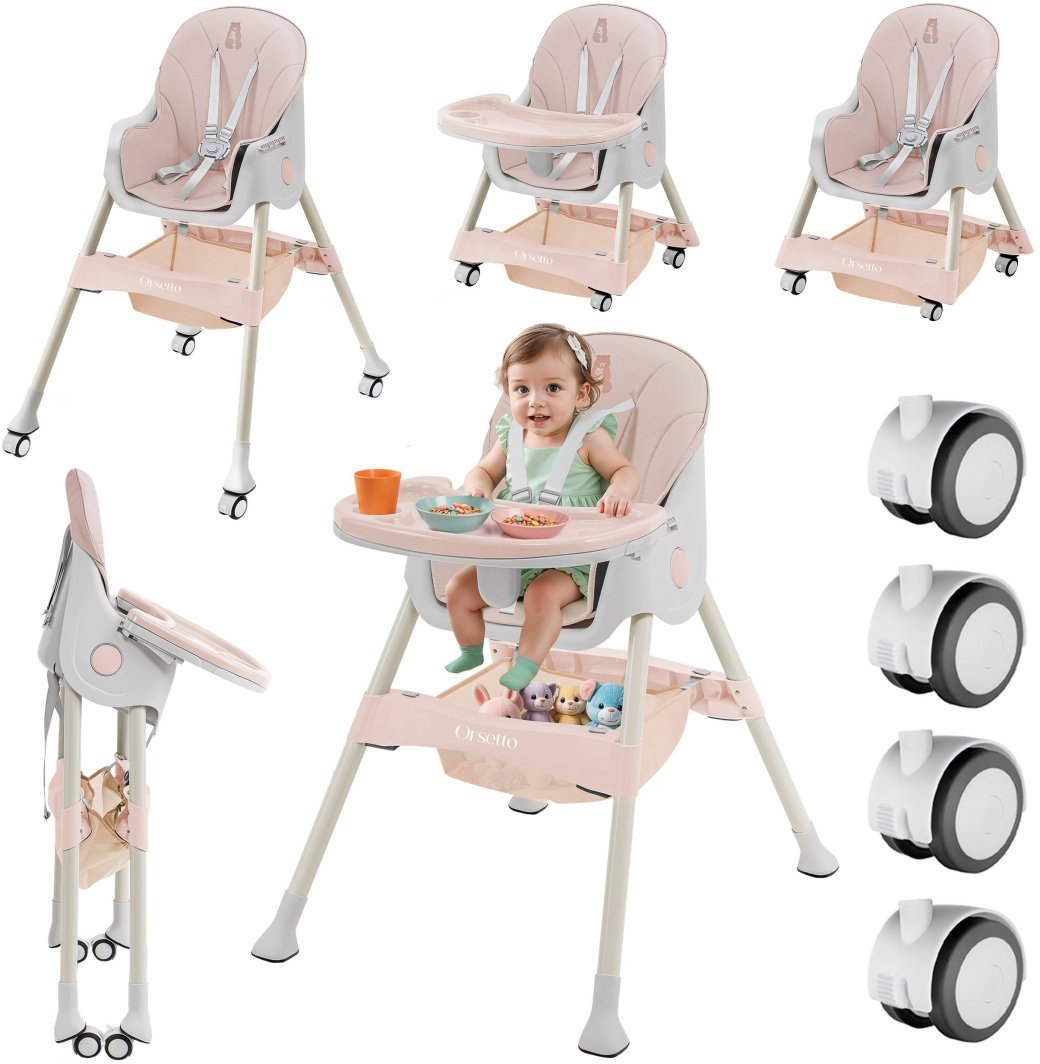 Krzesełko do karmienia Orsetto Karmelk 4w1 w różowym kolorze to znakomity wybór dla rodziców, którzy pragną zapewnić swojemu maluchowi komfort i bezpieczeństwo podczas posiłków. Dzięki czterem różnym konfiguracjom, krzesełko dostosowuje się do potrzeb rosnącego dziecka, co czyni je wszechstronnym rozwiązaniem na długie lata.