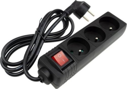 Przedłużacz 3 gniazda 1.5m z/u z wyłącznikiem czarny