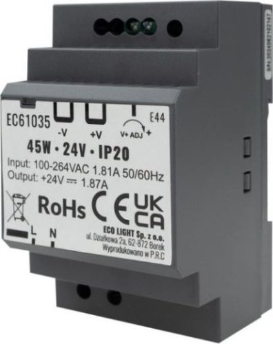 Ecolight Zasilacz Led Na Szynę Din 45W 24V Ip20 Eco* Light Ec61035 Eco* Light
