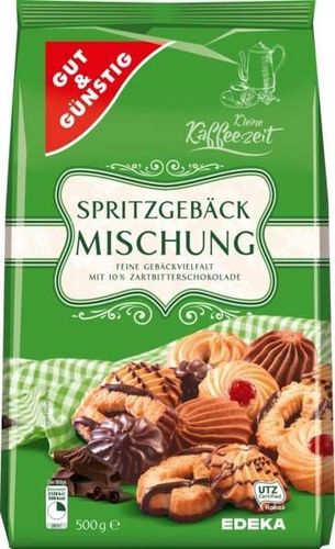 Mieszanka ciastek: 6 wybranych kruchych specjałów, z 10% gorzkiej czekolady, bez sztucznych aromatów i barwników, bez tłuszczów uwodornionych. Doskonała przekąska do popołudniowej herbaty.