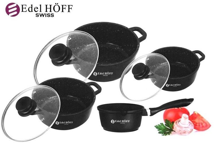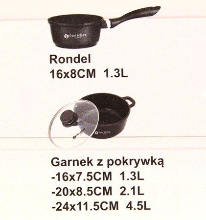GARNKI 7 elementowe, EDEL HOFF wyprodukowane ze stopu aluminium z wewnętrzną powłoką anty-przywierającą ceramiczną