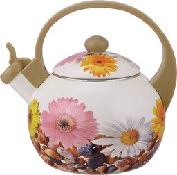 Czajnik emaliowany 2.2L wykonany ze stali węglowej pokrytej wysokiej jakości żaroodporną emalią . Zewnętrzna oraz wewnetrzna część czajnika pokryta jest żaroodporną emalią. Wyposażony w gwizdek odchylany oraz uchwyty bakielitowe, nie nagrzewające się. Przystosowany do kuchenek gazowych, ceramicznych, węglowych, a także do elektrycznych i indukcyjnych. Nadaje się do mycia w zmywarkach. Dane techniczne: - wysokość: 23,5 cm - średnica dna: 13,5 cm - średnica wlewu: 11,7 cm - pojemność: 2,2 l - waga: ok. 855 g Wzór STONE (Gerbery)