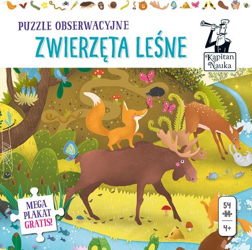 Edgard Puzzle Obserwacyjne Zwierzęta Leśne + Plakat XXL Kapitan Nauka
