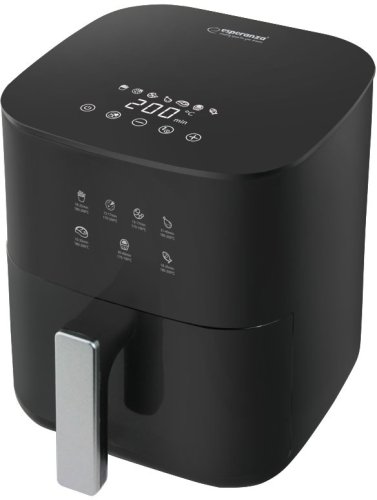 Frytkownica beztłuszczowa Esperanza PATATE FRITTE to idealne rozwiązanie dla osób, które pragną cieszyć się smakiem smażonych potraw w zdrowszej wersji. Urządzenie pozwala przygotować chrupiące frytki, soczystego kurczaka czy aromatyczne warzywa bez użycia tłuszczu – szybko, wygodnie i bez kompromisów w smaku. Dzięki wysokiej mocy i cyrkulacji gorącego powietrza potrawy są równomiernie opiekane, a ich przygotowanie zajmuje zaledwie kilka minut. Nowoczesny wygląd urządzenia sprawia, że doskonale prezentuje się w każdej kuchni, a intuicyjny panel sterowania z 7 gotowymi programami ułatwia obsługę. Regulacja temperatury i minutnik dają pełną kontrolę nad procesem pieczenia, a dzięki antypoślizgowym nóżkom urządzenie stoi stabilnie na blacie. To funkcjonalne i praktyczne urządzenie, które pokochają wszyscy domownicy.