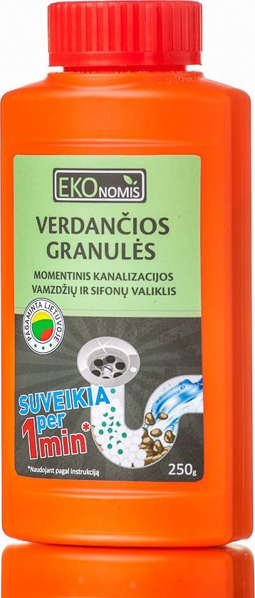 Ekonomis* EKOnomis* Verdančios Granulės to nowoczesny, błyskawiczny środek do czyszczenia kanalizacji, który skutecznie eliminuje zatory w rurach i syfonach. Dzięki wyjątkowej formule, te granulki stanowią doskonałe rozwiązanie do szybkiego usuwania tłuszczu, włosów oraz resztek mydła. Produkt dostępny jest w praktycznym opakowaniu o wadze 250 g, co czyni go idealnym wyborem dla każdego domu.