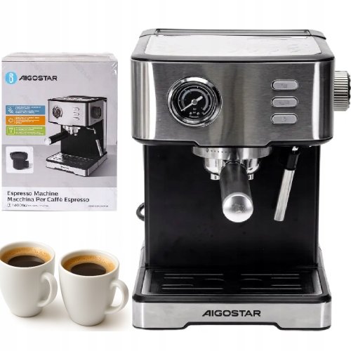 Ekspres ciśnieniowy Aigostar Ekspres Do Kawy Ciśnieniowy 1400W Kolbowy 20 Bar 1,7 L Stalowy