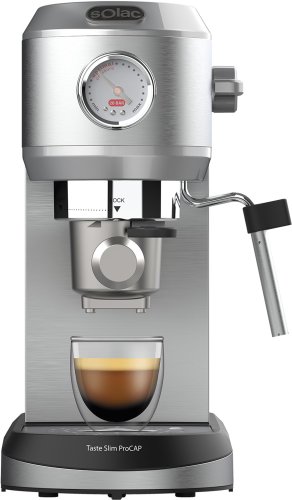 Ekspres kolbowy ciśnieniowy Solac CE4523 Taste Slim Pro Cap to nowoczesne urządzenie, które łączy w sobie funkcjonalność i elegancję. Dzięki kompaktowej budowie oraz stylowemu srebrnemu/szaremu wykończeniu, doskonale wpasuje się w każdą kuchnię, oferując jednocześnie wyjątkowe doznania smakowe.