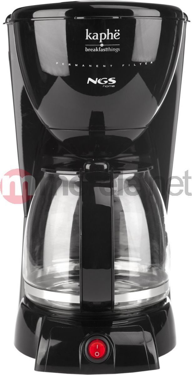 wy ekspres do kawy w kolorze czarnym, Kaphe marki NGS, o mocy 1000 W i pojemności 12-14 filiżanek. Model ten posiada szklany dzbanek na kawę, wyjmowany zbiornik na wodę oraz zabezpieczenie przed kapaniem. Urządzenie wyposażone zostało również we wskaźnik poziomu wody oraz w stały filtr. Ekspres posiada także funkcję podtrzymywania ciepła oraz możliwość regulacji mocy kawy.