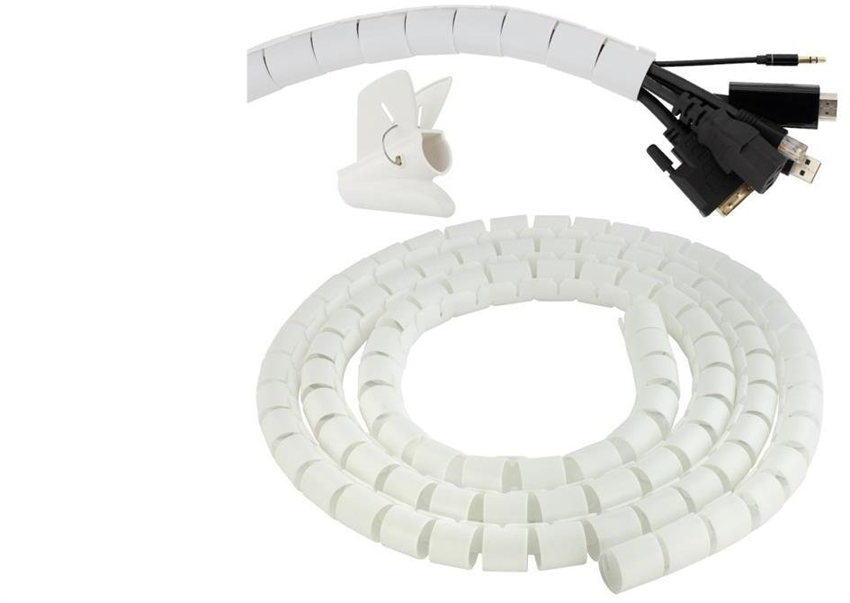 Organizer wykonany jest z trwałego polipropylenu w kolorze białym, co zapewnia nie tylko estetyczny wygląd, ale także długotrwałą ochronę przed zużyciem. Dzięki elastycznej konstrukcji, produkt jest łatwy w użyciu i dostosowuje się do różnych typów przewodów, co czyni go uniwersalnym rozwiązaniem dla każdego biura czy domowego stanowiska pracy.