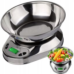 Elektroniczna waga kuchenna z misą 5kg/1g cyfrowa precyzyjna metalowa
