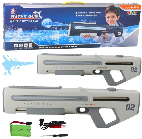 SZARY ELEKTRYCZNY PISTOLET NA WODĘ 62CM Z AKUMULATOREM 7.4V