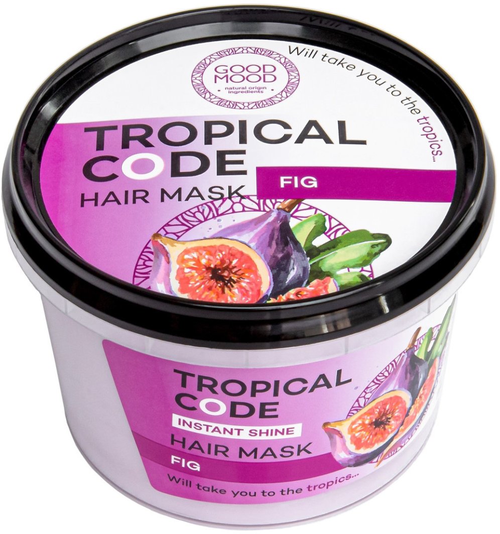Maska do włosów Good Mood Tropical Code, wzbogacona ekstraktem z fig i olejkiem migdałowym, nadaje włosom luksusowy połysk, elastyczność i miękkość.
