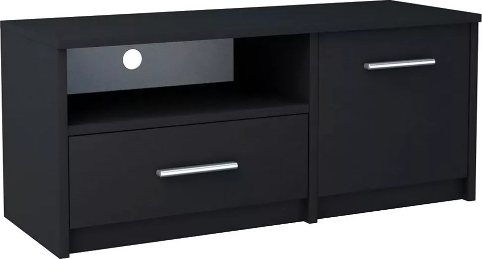 Szafka została stworzona z myślą o praktyczności. Oferuje jedną szufladę, jedną szafkę oraz otwartą półkę, co zapewnia wiele możliwości przechowywania sprzętu audio, płyt DVD oraz innych akcesoriów. Dzięki temu wszystko, co potrzebne do domowego kina, masz zawsze pod ręką.