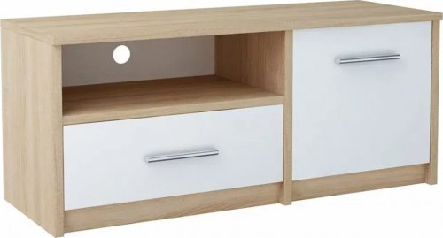 Szafka RTV Frovoli, wyposażona w jedną szafkę, jedną szufladę oraz otwartą półkę, oferuje wystarczająco dużo miejsca na przechowywanie sprzętu audio oraz ulubionych płyt DVD. To idealne rozwiązanie dla pasjonatów filmów i muzyki.