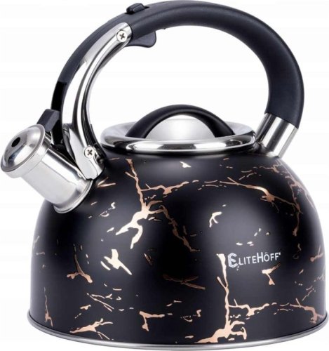 Elitehoff Czajnik tradycyjny stalowy 3 L czarny marmur z gwizdkiem indukcja gaz Elitehof E 5155