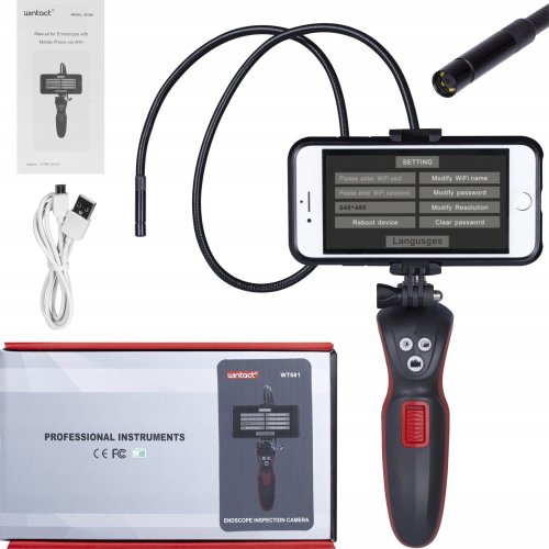 Kamera inspekcyjna wyposażona jest w funkcję Wi-Fi, co pozwala na łatwe połączenie z telefonem. Użytkownicy mogą na bieżąco śledzić obraz oraz nagrywać filmy z inspekcji, co znacznie ułatwia pracę.