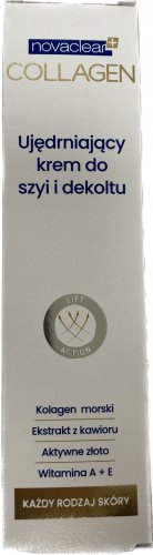 Krem Novaclear Collagen działa na skórę szyi i dekoltu, redukując widoczne oznaki starzenia. Regularne stosowanie produktu przyczynia się do poprawy elastyczności oraz jędrności skóry, co sprawia, że staje się ona bardziej gładka i promienna. Dzięki temu możesz cieszyć się zdrowym i młodym wyglądem przez długi czas.