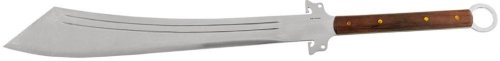 Rękojeść maczety, wykonana z drewna orzechowego, jest nie tylko estetyczna, ale także ergonomiczna, co zapewnia komfort podczas długotrwałego użytkowania. Dodatkowo, jelec zwiększa bezpieczeństwo, a na końcu rękojeści znajduje się kółko, które można wykorzystać do zamocowania linki zabezpieczającej.