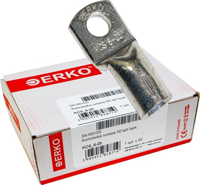 Erko Końcówka oczkowa rurowa KCS CU 25mm M6 50szt ERKO