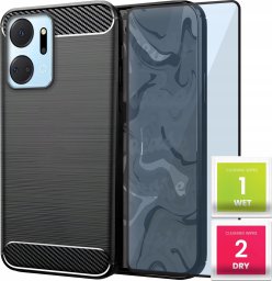 Etui do Honor X7a (Czarne, Karbon, Pancerne, Case, Plecki) Szkło 9H