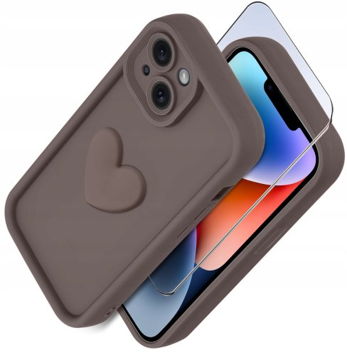 Etui do iPhone 13 | 14 silikonowe MATOWE serce + Szkło ochronne na ekran 9H