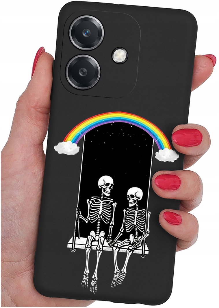 Etui wyróżnia się wielokolorowym nadrukiem na czarnym tle, co nadaje mu żywy i wyrazisty charakter. Dzięki temu Twój telefon będzie prezentować się wyjątkowo i stylowo.