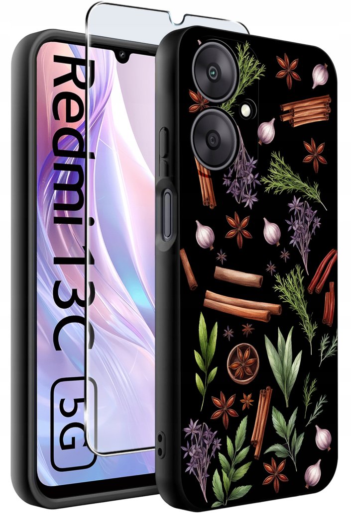 ETUI do Xiaomi Redmi 13C 5G WZORY |SILIKONOWE MATT CASE +SZKŁO HARTOWANE 9H