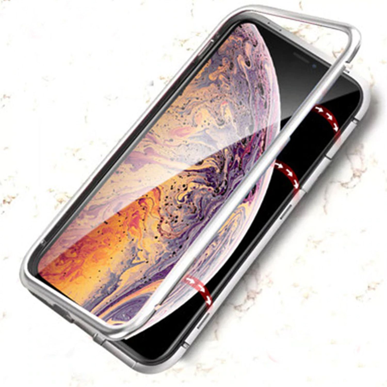 Produkt składa się z dwóch części. Pierwszą z nich jest tylna część, która składa się z kolorowej ramki, na której krawędziach zamontowane zostały magnesy oraz przezroczystego szkła. Drugą częścią etui jest frontalna ramka która po złożeniu zamyka urządzenie wewnątrz.