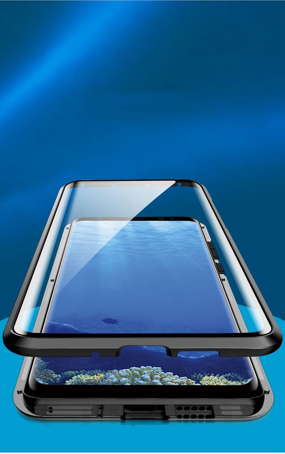 Drugą częścią etui jest frontalna ramka z wytrzymałym szkłem hartowanym, która po złożeniu zamyka urządzenie wewnątrz