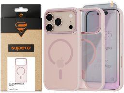 Etui matowe Supero Magmat MagSafe do iPhone 17 Pro Max, pudrowy róż + szkło
