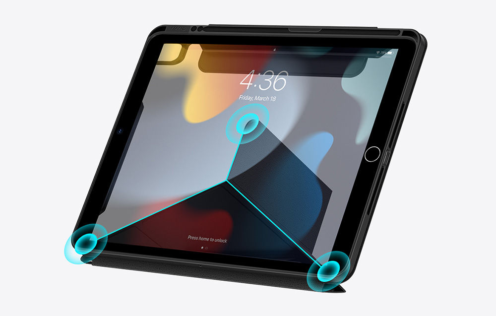 Wyjątkowo lekka obudowa jest doskonale dopasowana do iPada, dzięki czemu niezawodnie ochroni jego przód, tył oraz rogi. Ponadto rozkładana podstawka pozwoli Ci wygodnie położyć tablet na biurku czy stoliku. Ta funkcja idealnie sprawdzi się podczas codziennego użytkowania, między innymi w czasie oglądania filmów czy przeglądania ulubionych stron internetowych.