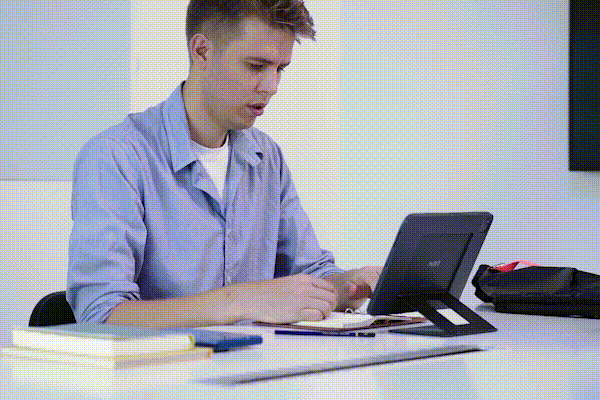 REWOLUCYJNE PODEJŚCIEWspiera i chroniDzięki smukłej, ale elastycznej konstrukcji z podwójnymi zawiasami, etui ma wbudowaną podstawkę, która pozwala podnieść iPada do 3,15 cala, zapewniając wygodne oglądanie w dowolnym miejscu. Unoś go, gdy go potrzebujesz, i spraw, by był niewidoczny, gdy tego nie oczekujesz. | ![]() |