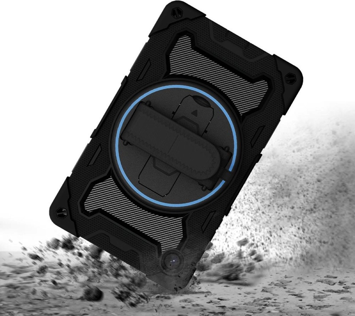 Dla zwiększenia komfortu użytkowania, etui zostało wyposażone w regulowaną rączkę, która obraca się o 360 stopni. To pozwala na korzystanie z tabletu zarówno w pionie, jak i poziomie, a także służy jako wbudowany pasek na rękę, ułatwiając transport i minimalizując ryzyko upuszczenia. Chowana podpórka umożliwia wygodne oglądanie filmów i przeglądanie treści multimedialnych bez użycia rąk, co czyni to etui idealnym towarzyszem w każdej sytuacji.